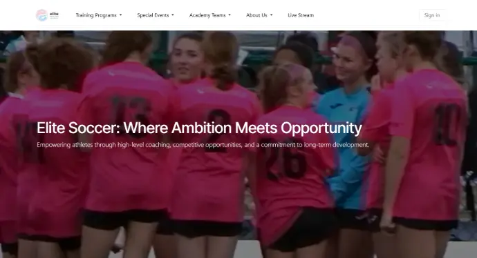 Elite Soccer Academy develops players through professional training and competitive programs, while streamlining registration, event management, payments, eCommerce, and live streaming for a seamless experience.